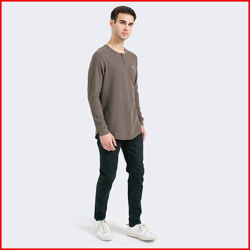 Greenlight Kaos Pria Lengan Panjang Polos Katun Tshirt Basic Half Kancing Pria Coklat 061222