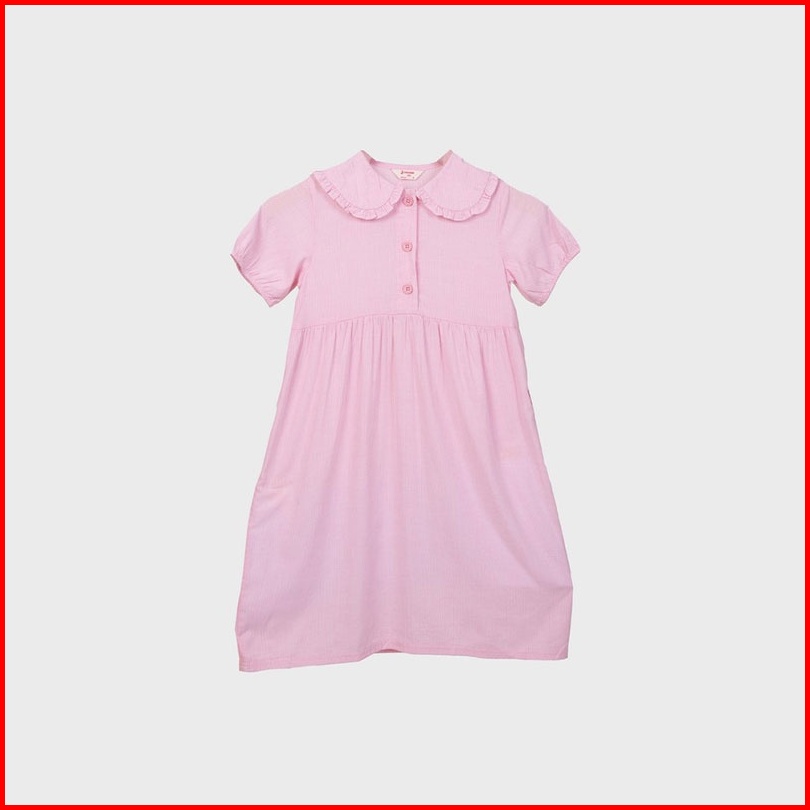 3second Kids Gaun Kerah Renda Anak Perempuan Lengan Pendek Balon Girl S Ruffle Dress Baju Terusan Cewek Pink 080123