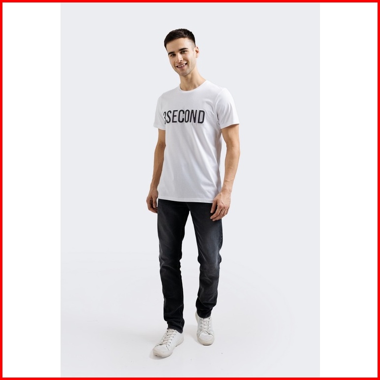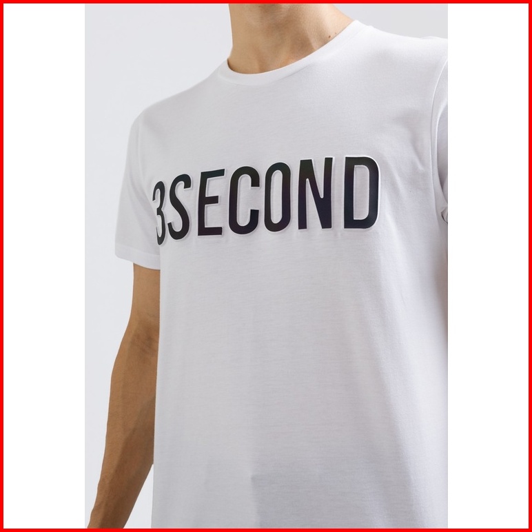 3second Kaos Pria Lengan Pendek Katun Print Timbul Putih 241122