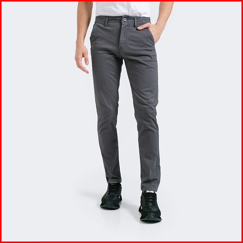 3second Original Celana Chino Slim Fit Panjang Cotton Katun Long Pants Stretch Pria Abu Dark Grey 071222