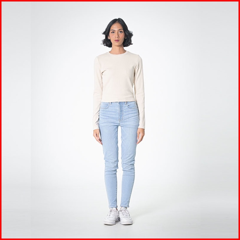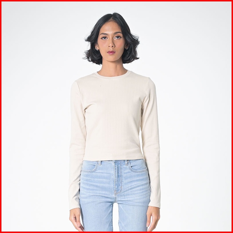 3second Kaos Mid Cropped Wanita Lengan Panjang Basic Polos Casual Timeless Outfit Cream C070423