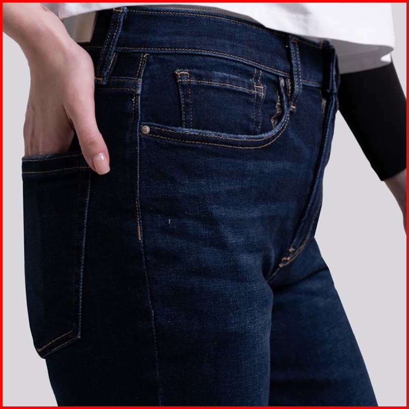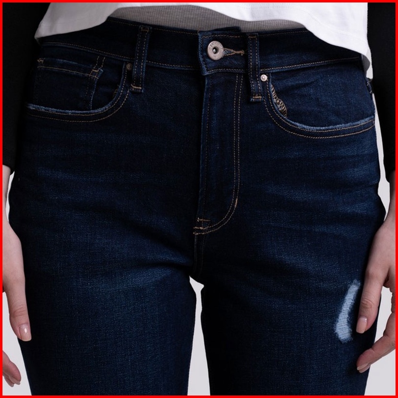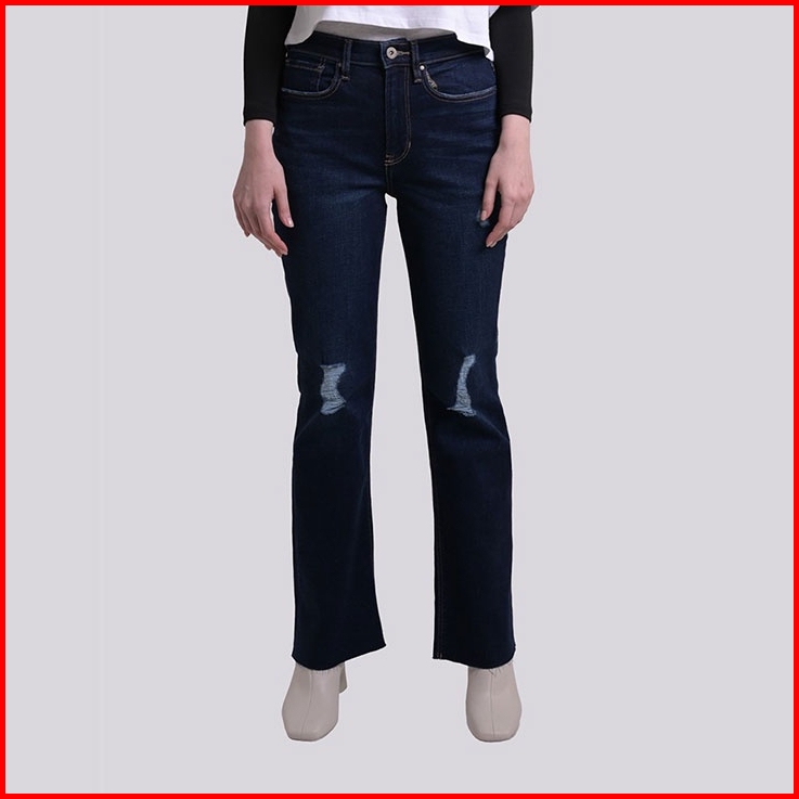 3second Celana Jeans Wanita Strech Dark Blue Bahan Denim Flare Jeans High Waist Ripped Cewek Casual 031222