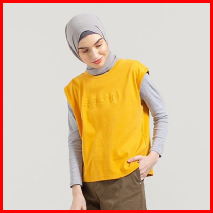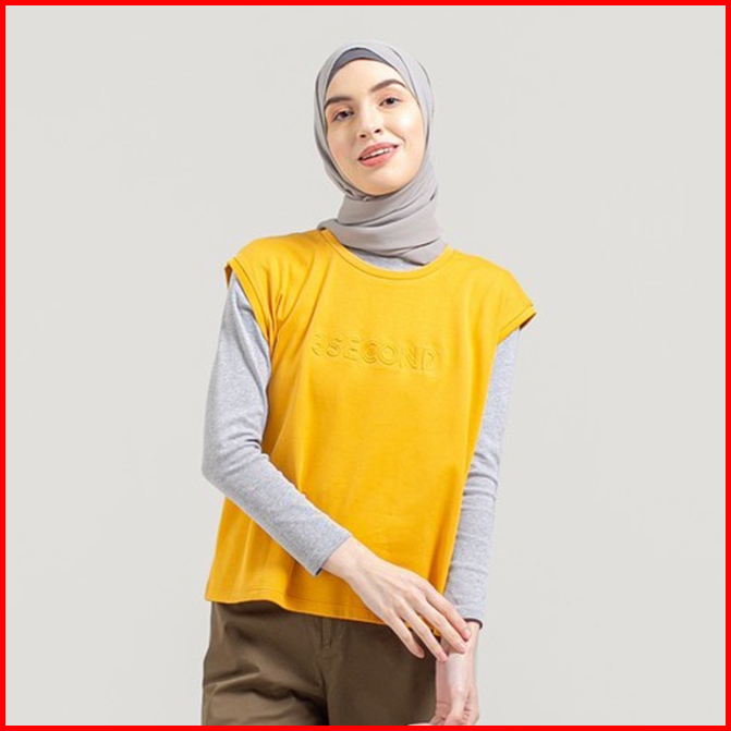 3second Kaos Outer Wanita Tanpa Lengan Print Timbul Katun Kuning 040322
