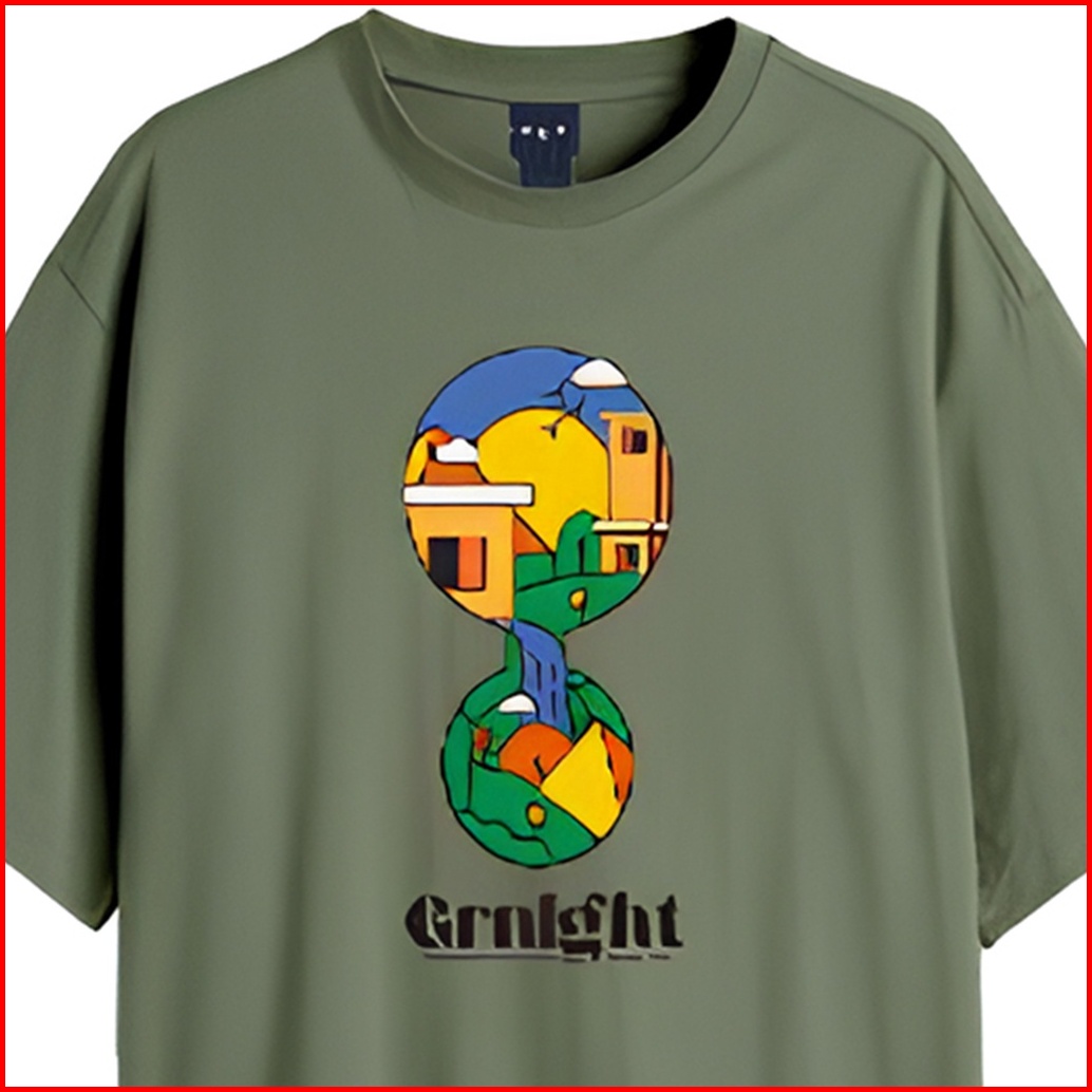 Greenlight Kaos Lengan Pendek Pria T-shirt Village Fill Logo Baju Atasan Casual Earth Tone Short Sleeve Cotton Bahan C14