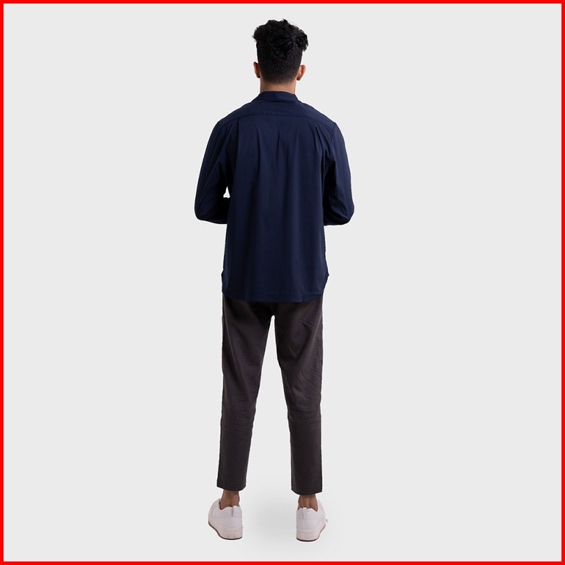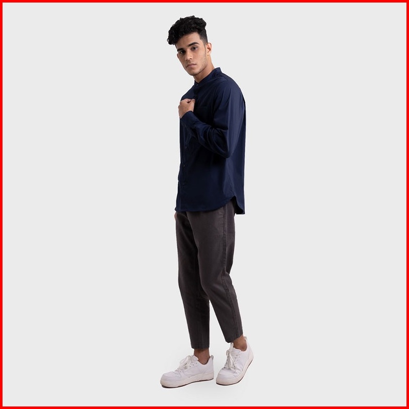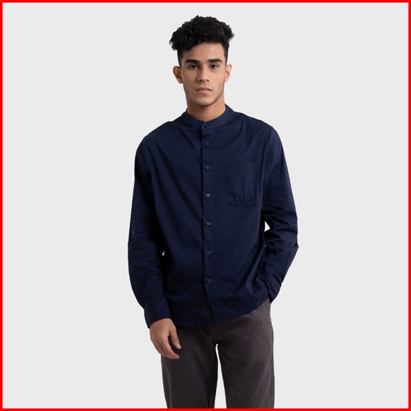 Famo Kemeja Band Collar Pria Lengan Panjang Basic Koko Katun Baju Atasan Cowok Formal Collarless Lebaran Kerah Berdiri S
