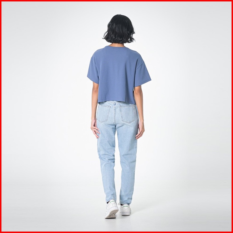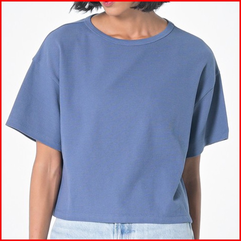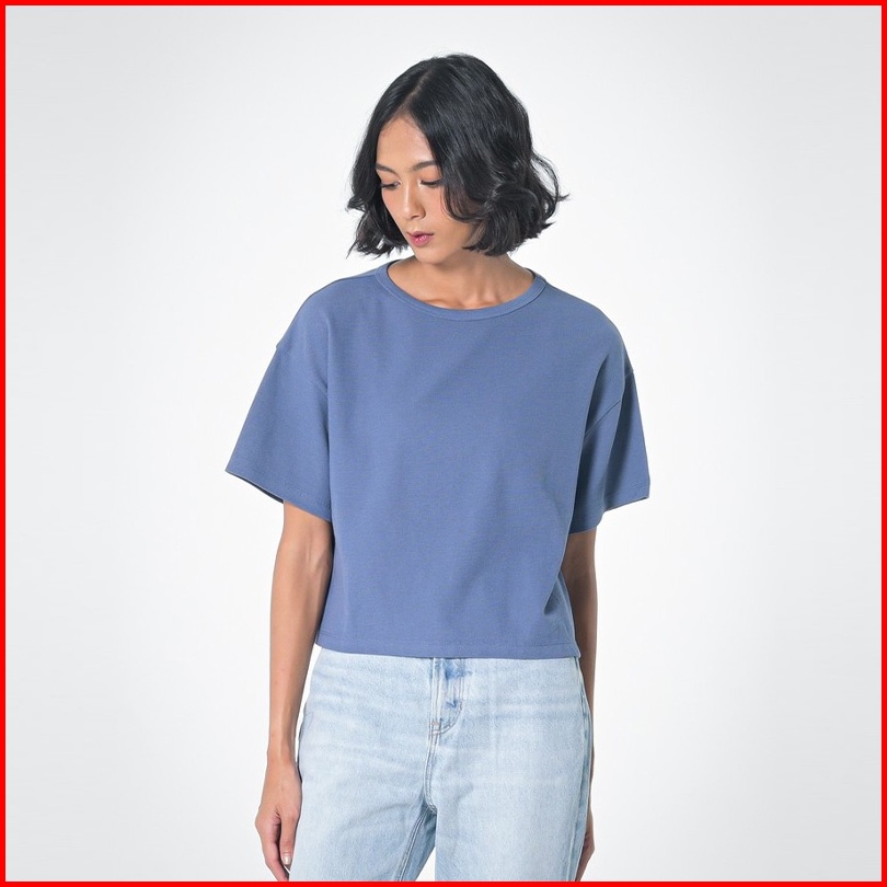 3second Kaos Mid Cropped Wanita Lengan Pendek Basic Polos Casual Timeless Outfit Biru 100423