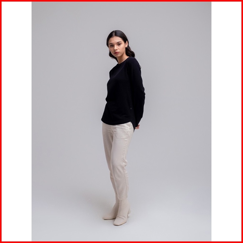 Famo Kaos Lengan Panjang Wanita Basic Polos T Shirt With Curve Baju Atasan Hitam 030423
