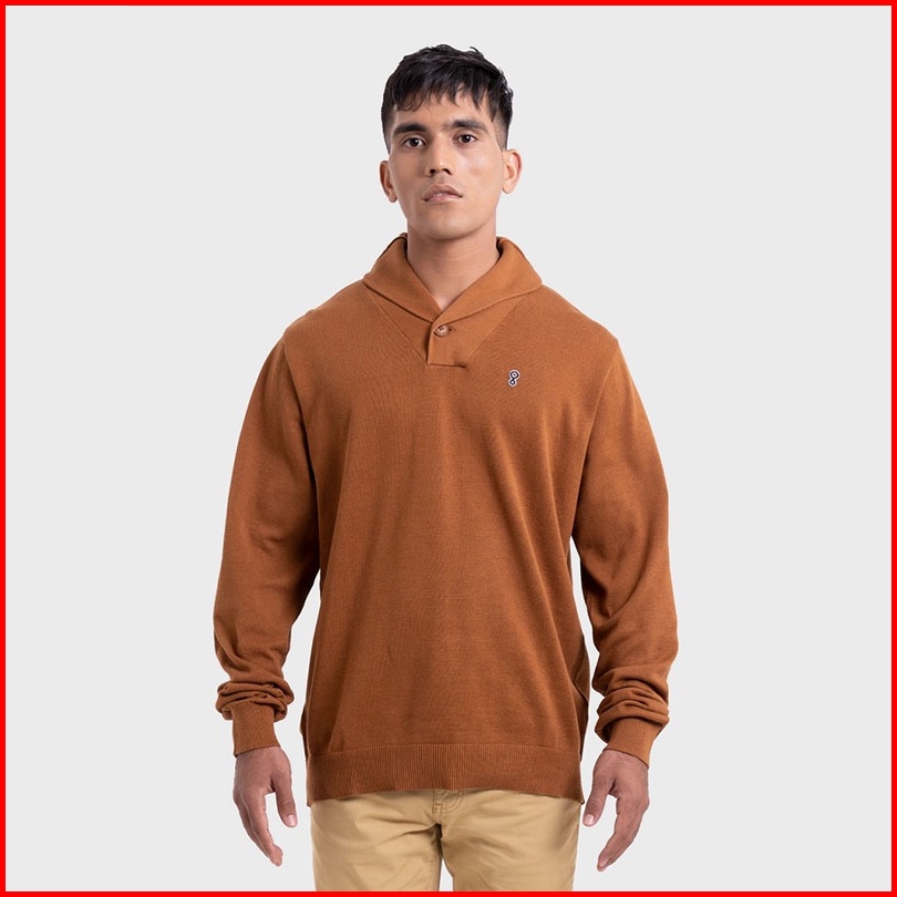 Greenlight Knitwear Pria Rajut With Collar Knit Outer Men Cotton Jacket Outerwear Cowok Baju Atasan Coklat 090123