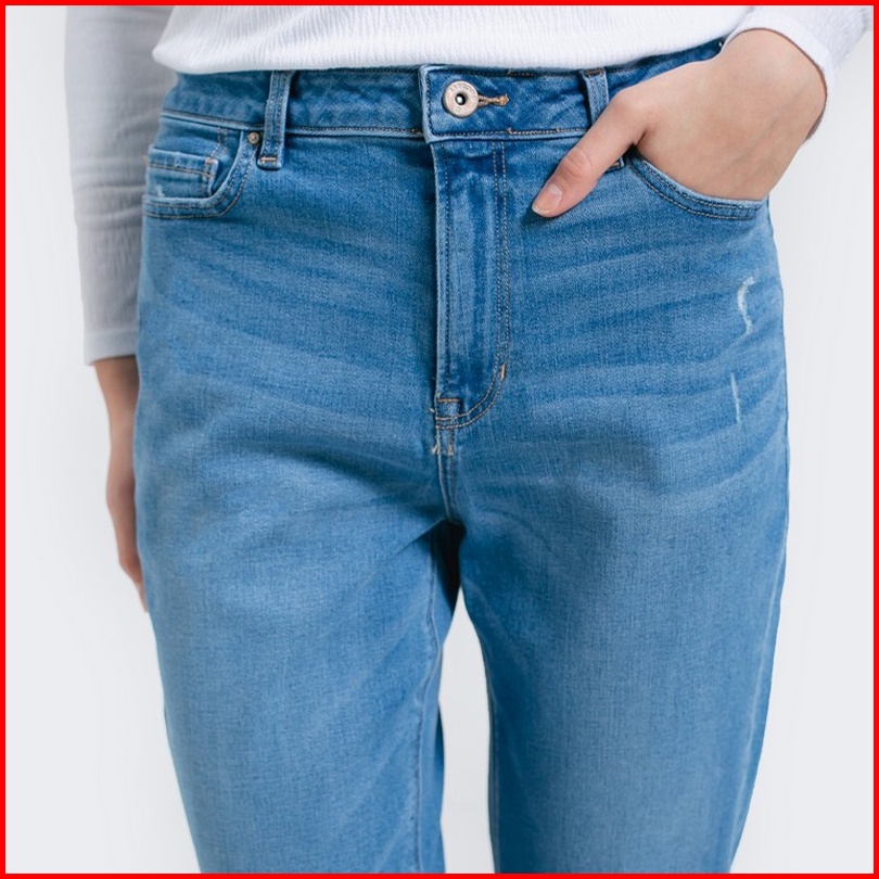 3second Jeans Wanita High Waist Medium Washing Stretch Denim Pants Mom Denim Non Ripped Woman 051222