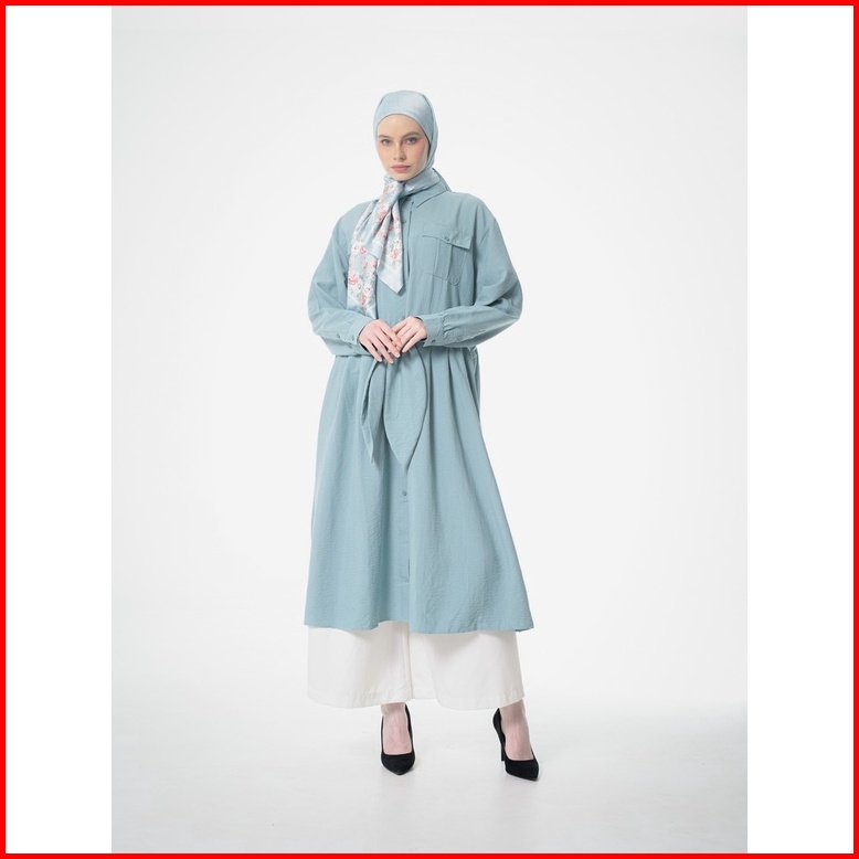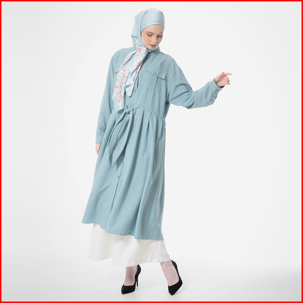 Hanna Maxi Dress Eris Circle Poly With Button And Belt Long Sleeve Polyester Gaun Wanita Baju Kemeja Terusan Biru 050323