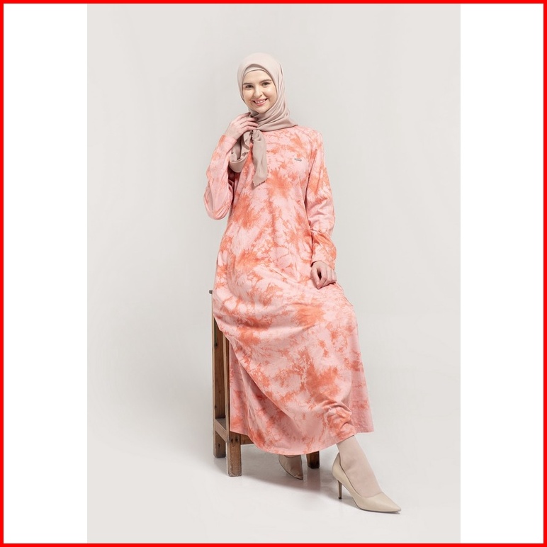 Hanna Dress Pakaian Hijab Tie Die Cotton Katun Comboed 24s Dusty Pink 020222