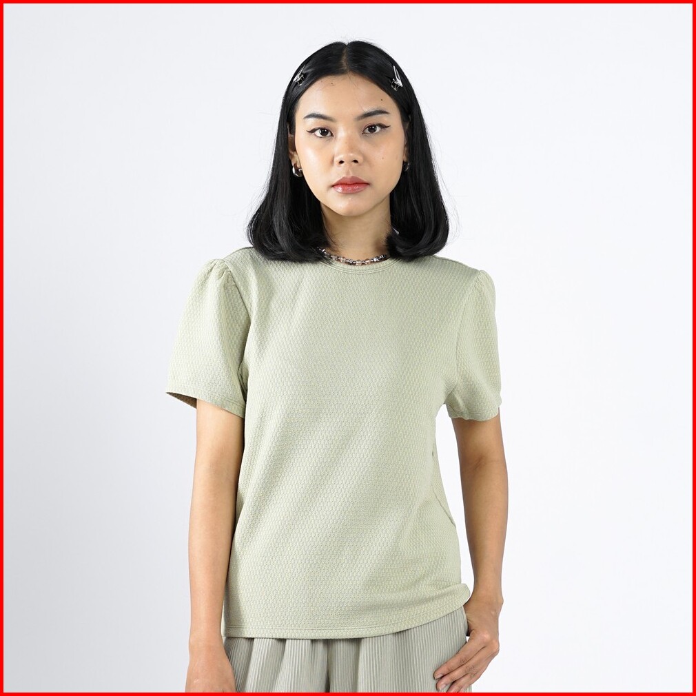 3second Kaos Wanita Lengan Puff Pendek Regular Fit Polyester Knit Buttercup C380225