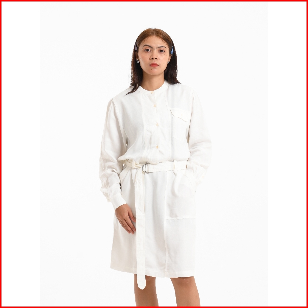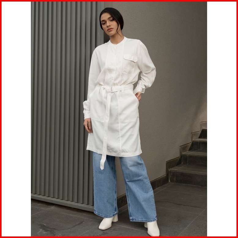 Greenlight Kemeja Dress Wanita Long Shirt Band Collar Kerah Bulat Casual Outfit Women Putih 140423