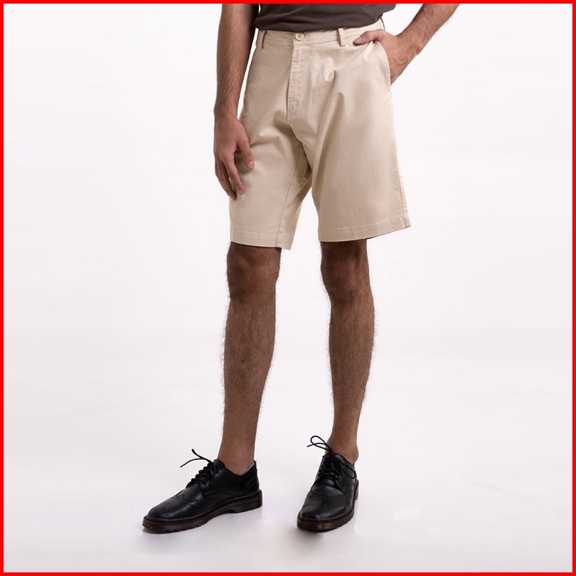 Famo Celana Pendek Chino Pria Polos Short Pants Men Katun Spandex Santai Casual Cotton Cream 180123
