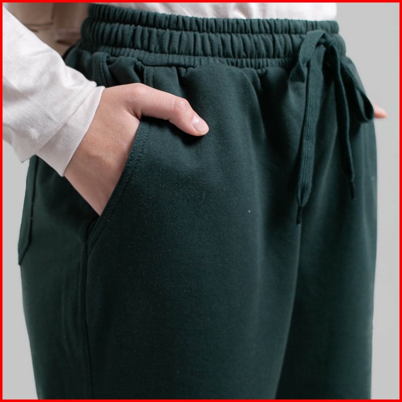 3second Original Celana Panjang Elastic Waist Pinggang Karet Cotton Poly Long Pants Wanita Hijau Scarab Green 011022