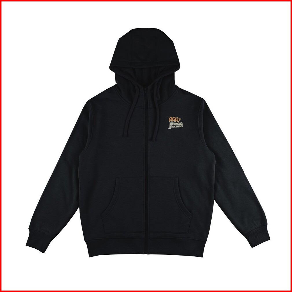 3second Jaket Pria Zipper Hoodie Sweatshirt Regular Fit Fleece Logo Script Zen Hp-c101224