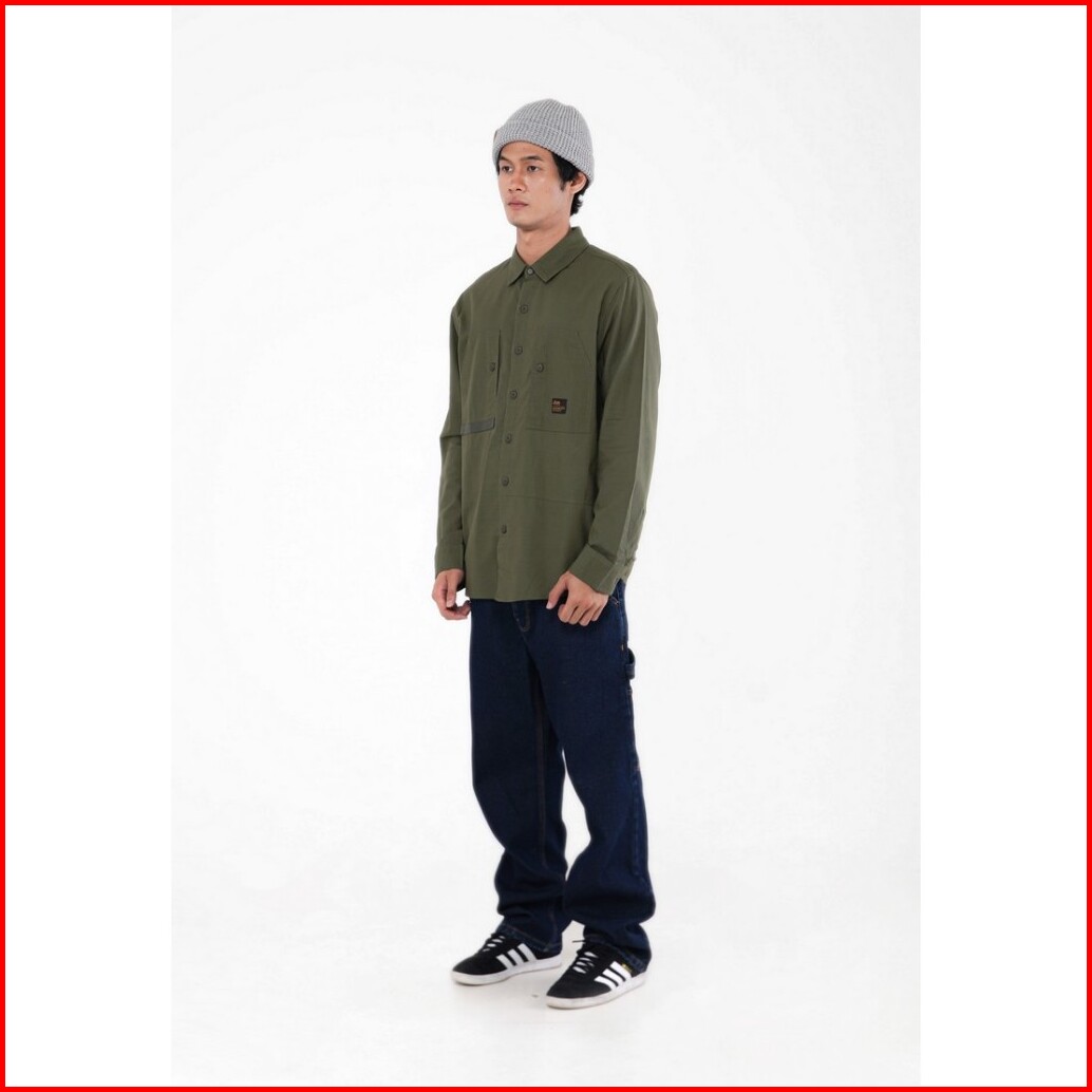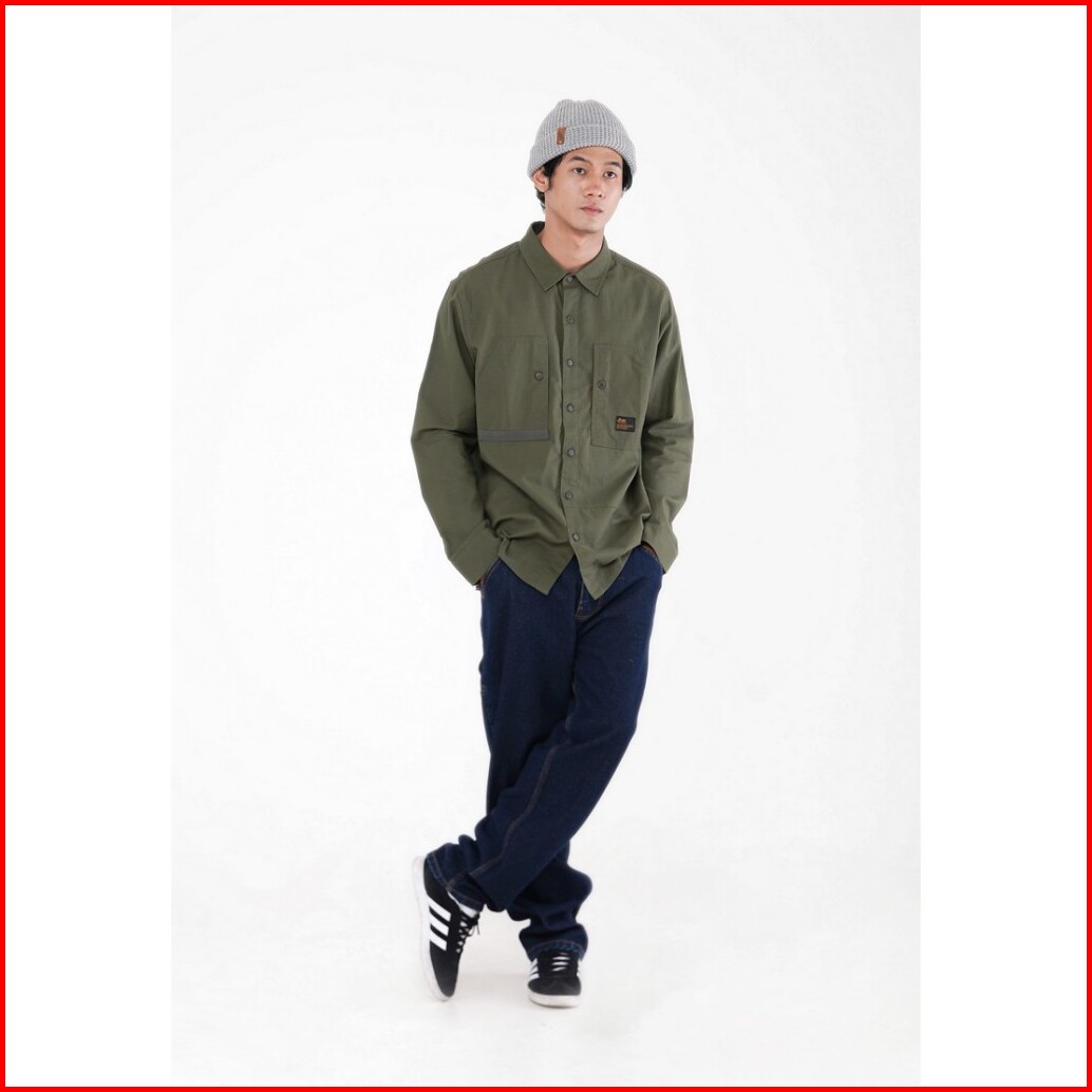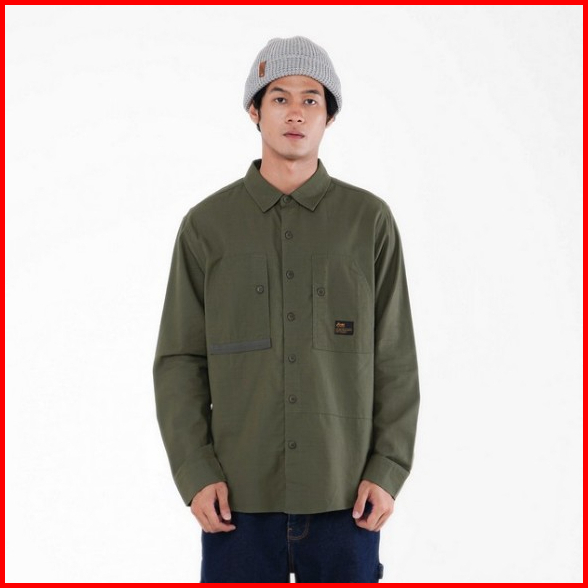 Fmc Kemeja Pria Lengan Panjang Katun Slub Patchwork Tonal Colorblock 010324