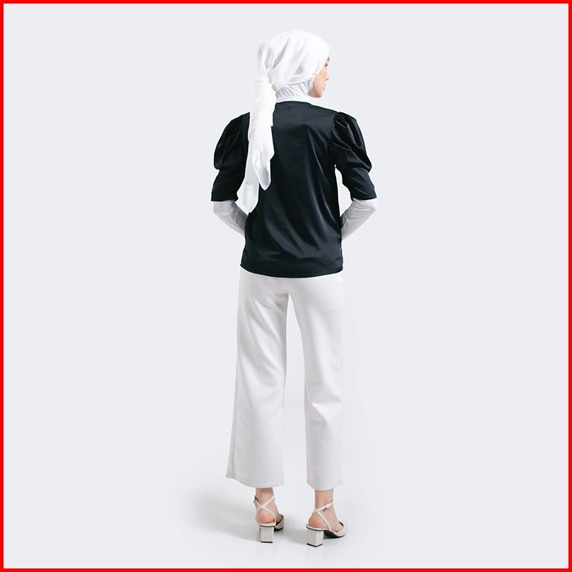 Famo Kemeja Polos Original Lenganpendek Poly Spandex Original Lenganbalon V-neck Wanita Hitam 051222