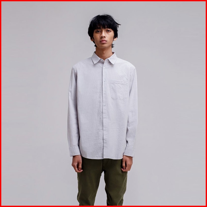 Greenlight Kemeja Tangan Panjang Polos Katun Shirt Stripe Long Sleeve 150423