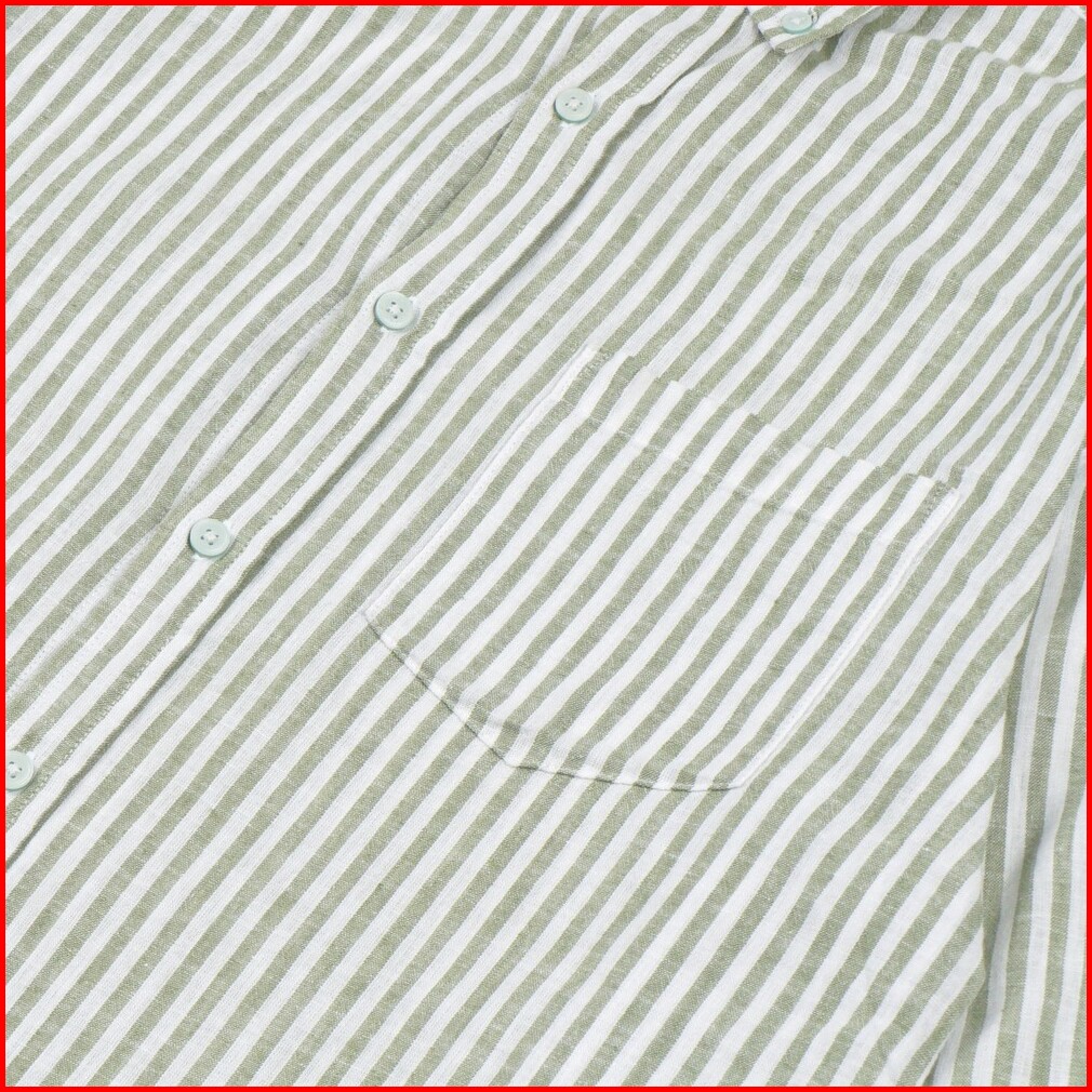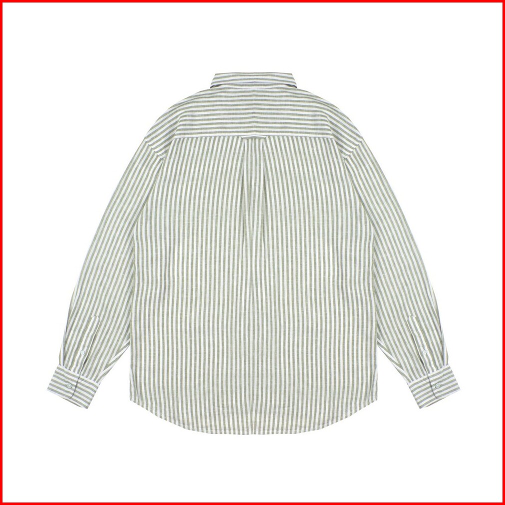 Famo Kemeja Lengan Panjang Pria Linen Stripe Long Sleeve Shirt Motif Garis Garis Green 080423