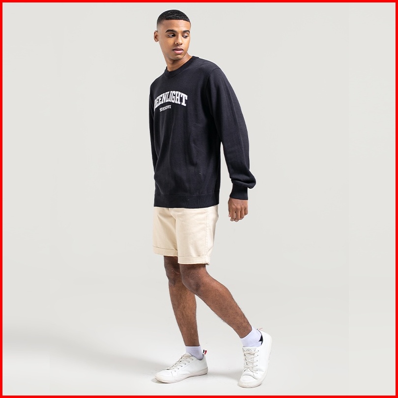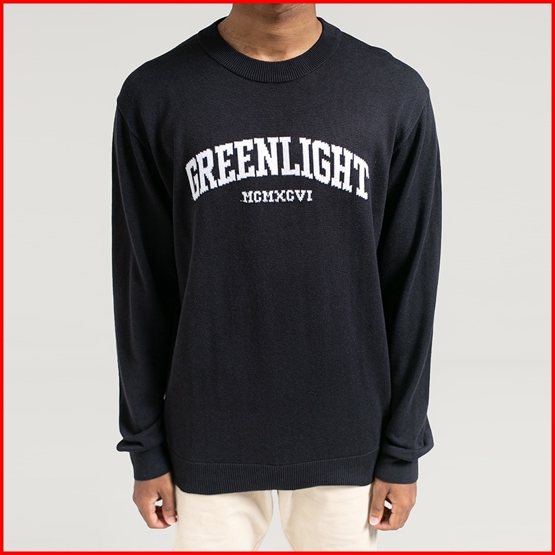 Greenlight Sweater Rajut Katun Outer Round Neck Graphic Pria Hitam 010622
