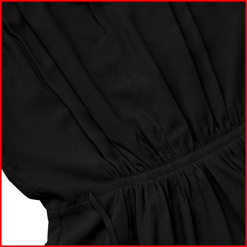 Famo Dress Hitam Pendek Drawstring Waist Lengan Pendek Baju Terusan Wanita C010923