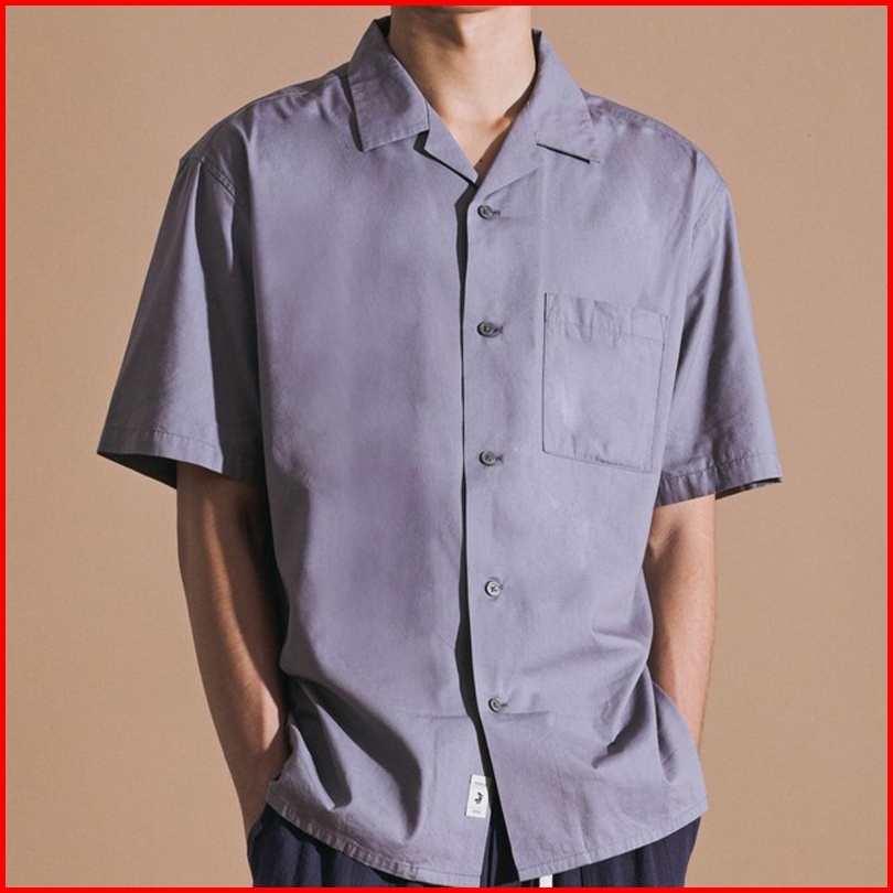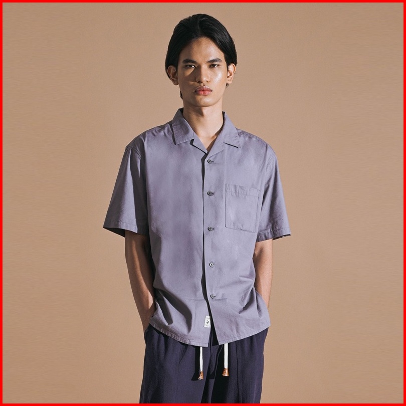 3second Bowling Shirt Kemeja Lengan Pendek Pria Cuban Collar Casual Baju Santai Kerah Terbuka Abu 230423
