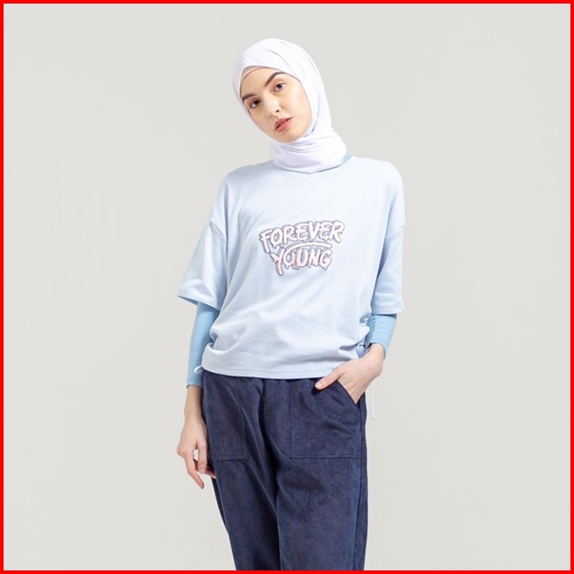 3second Kaos Wanita Lengan Pendek Forever Young Soft Blue 040422