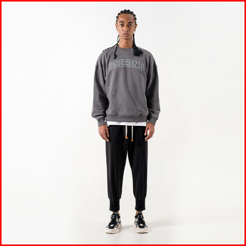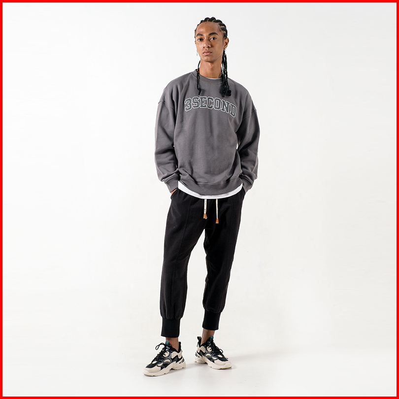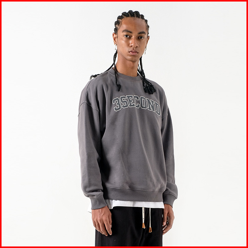 3second Sweater Lengan Panjang Pria Big Logo Center Outerwear Sweatshirt Baju Atasan Cowok Abu 110423