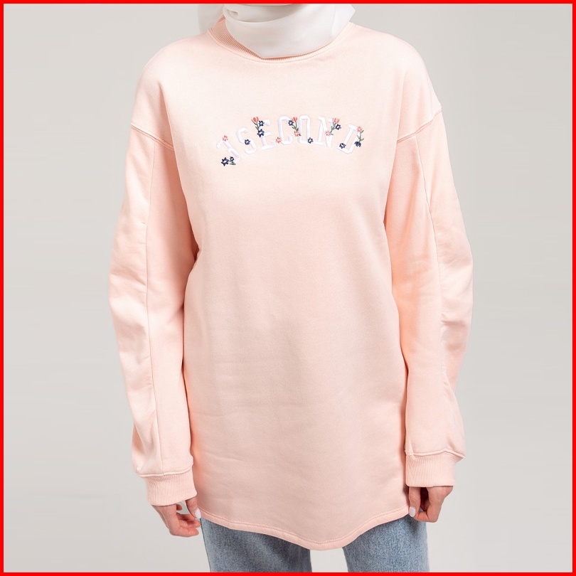 3second Sweater Wanita Lengan Panjang Katun Fleece Pink 040222