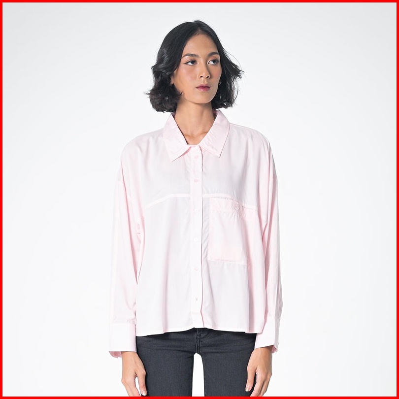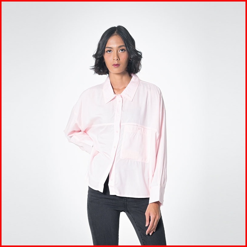 3second Kemeja Lengan Panjang Wanita Basic Viscose Polos Pink 190323