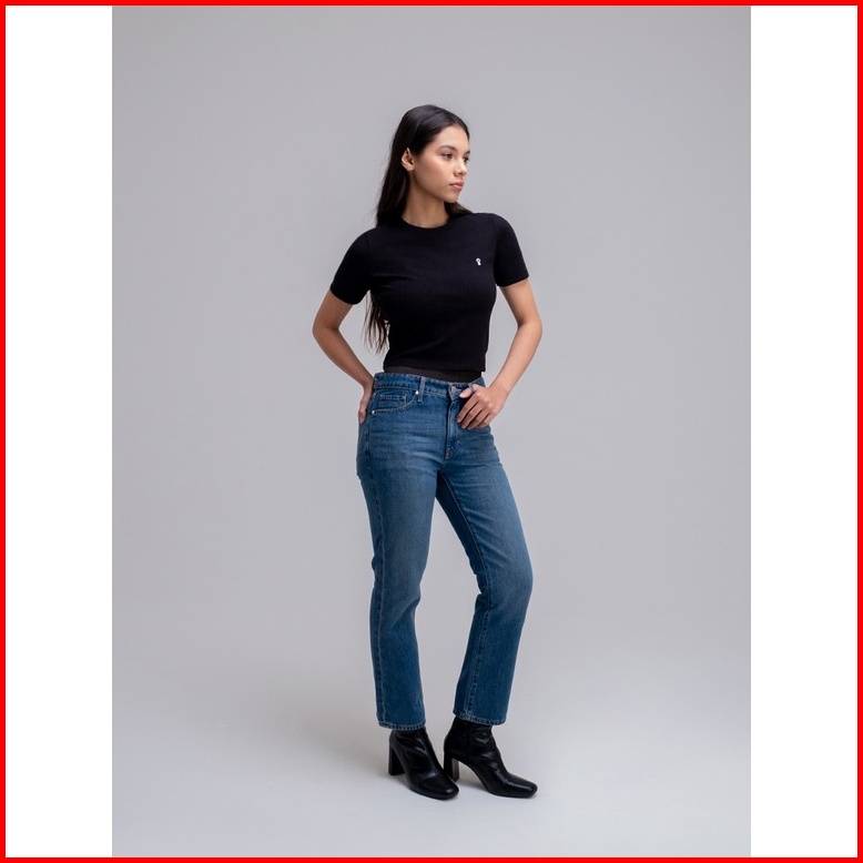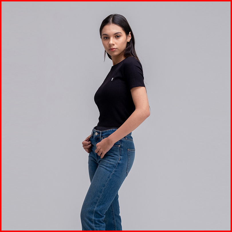 Greenlight Mid Crop Kaos Lengan Pendek Wanita Basic T Shirt Polos Inner Wear Baju Atasan Santai Cewek Warna Hitam 050123