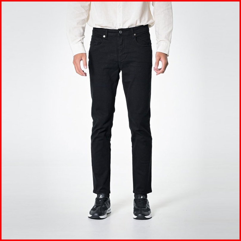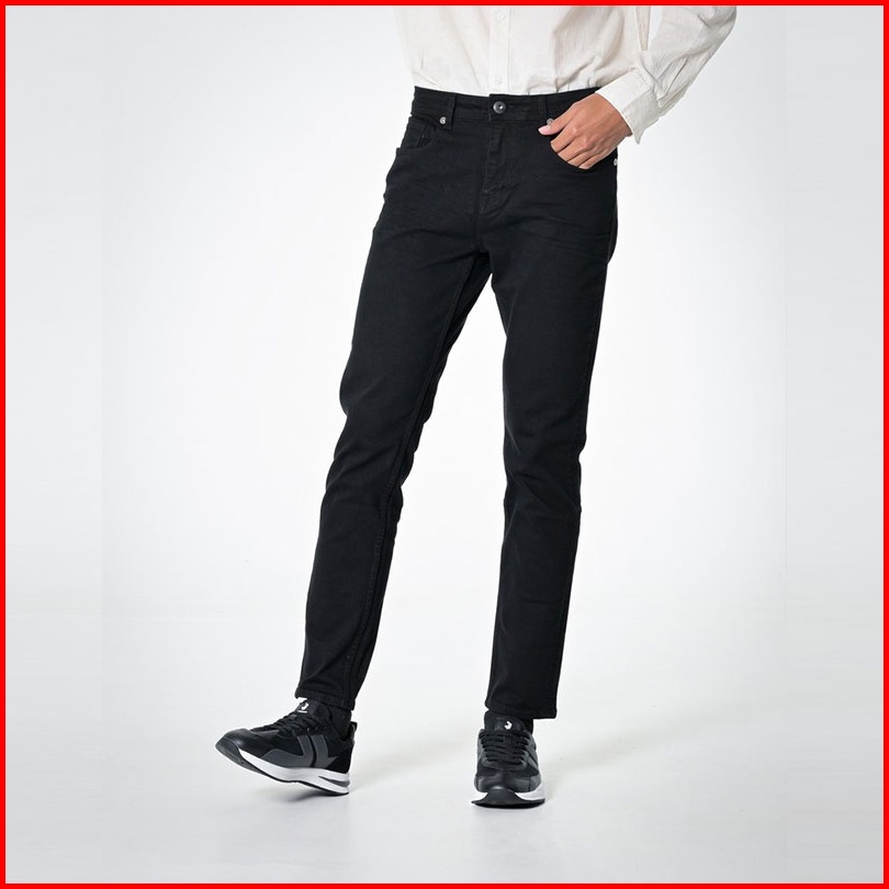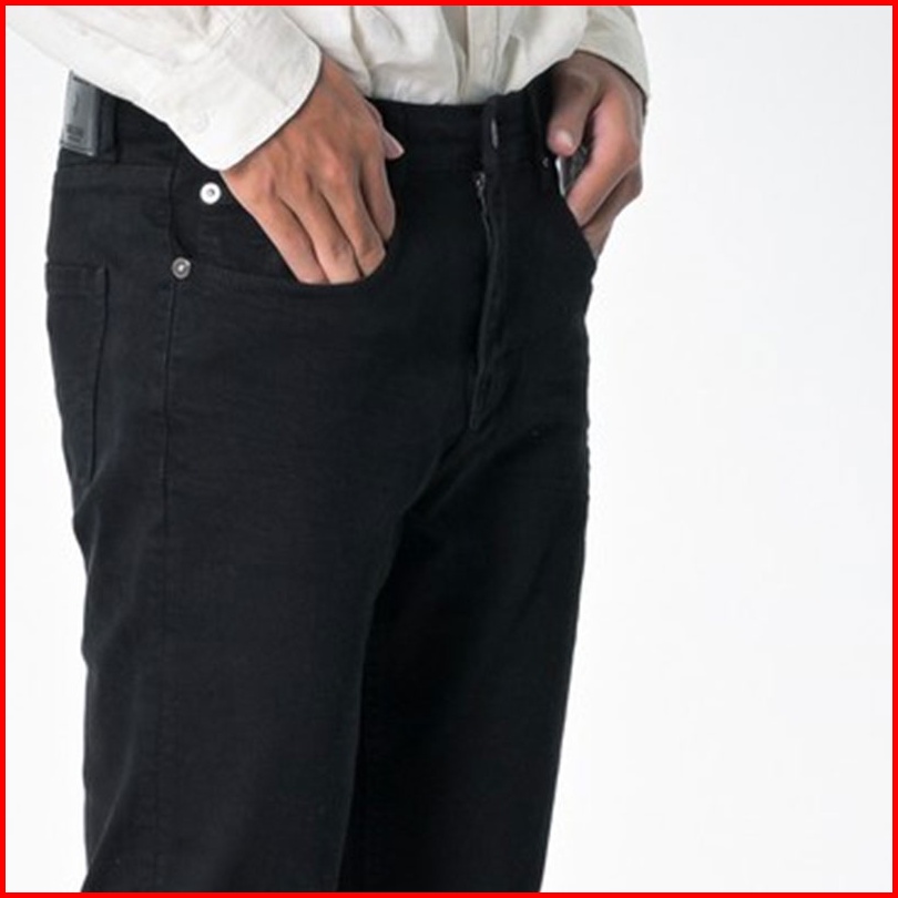 3second Slim Fit Jeans Pria Casual Pants Celana Katun Spandek Stretch Warna Hitam 040323