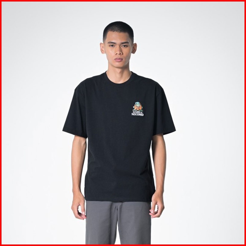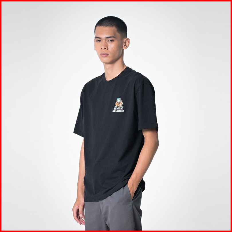 3second Kaos Lengan Pendek Pria Minimalis Desain Logo Karakter Men S T Shirt Cotton Short Sleeve Hitam 330323