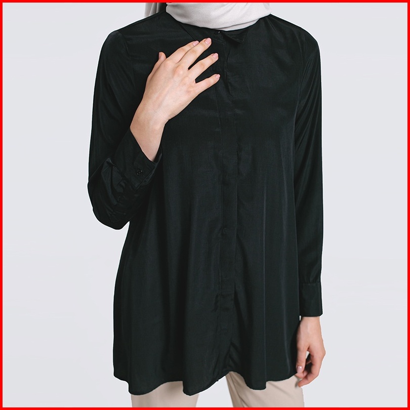 Famo Kemeja Polos Original Lenganpanjang Poly Viscose Shirt Basic Wanita Hitam 091122