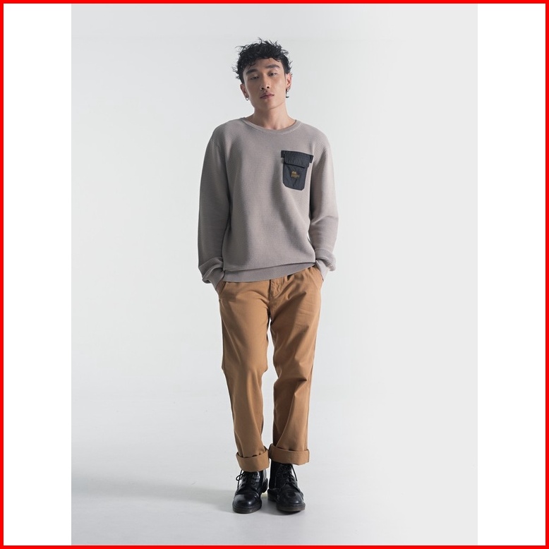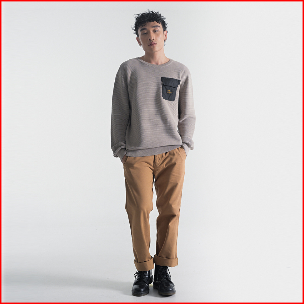 Fmc Sweater Rajut Pria With Pocket Knitwear Tekstur Garis Garis Long Sleeve Cotton Cream 010323