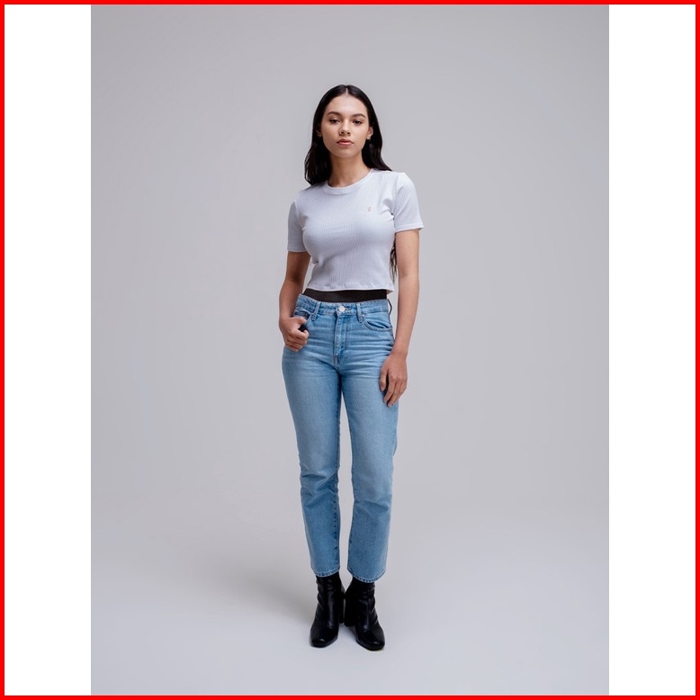 Greenlight Kaos Lengan Pendek Wanita Mid Crop T Shirt Polos Baju Atasan Cewek Putih 040123