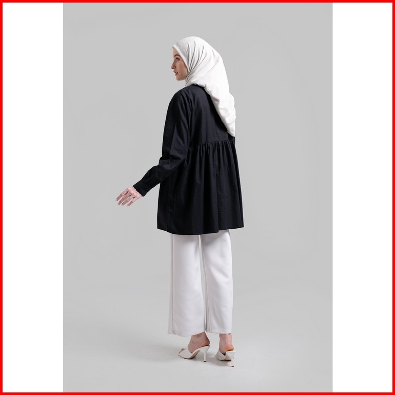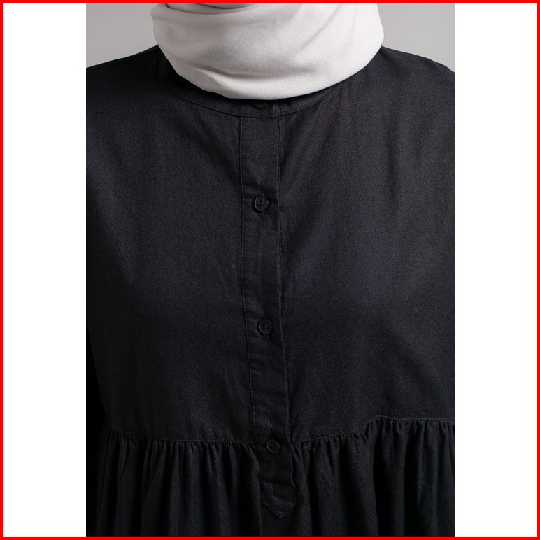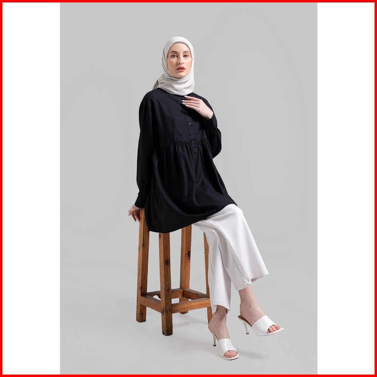 Hanna Tunik Isla Wanita Atasan Hijab Katun Soft Linen Hitam 011022