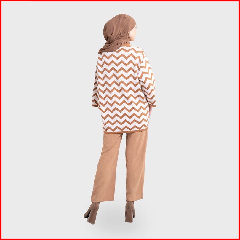 Hanna Rajut Wanita Lengan Pendek Zigzag Stripe Knitwear Shirt Basic Motif Garis Garis Baju Atasan Dinda Knit Coklat 0102