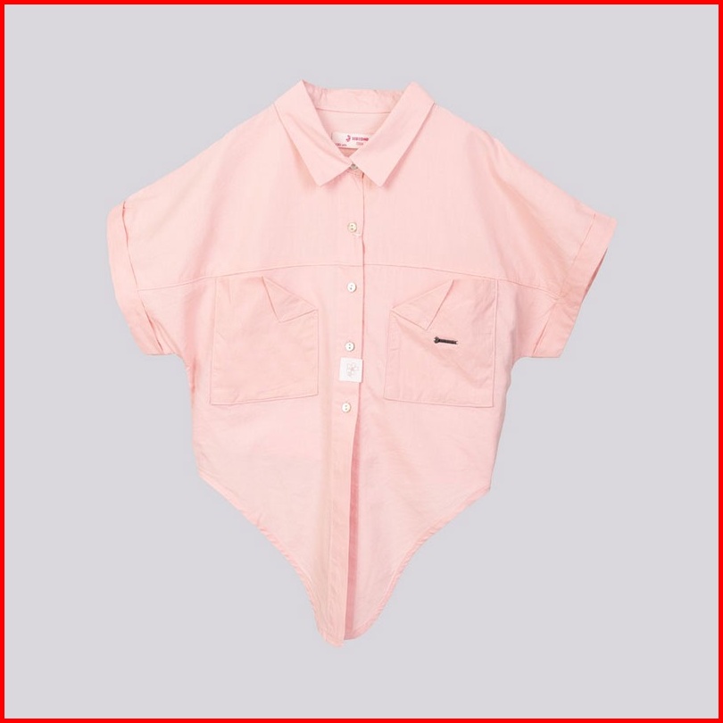 3second Kids Kemeja Anak Perempuan Lengan Pendek Ikat Bawah Casual Shirt Pink 040223