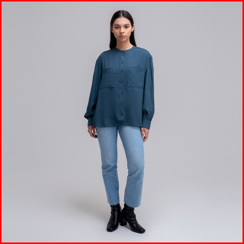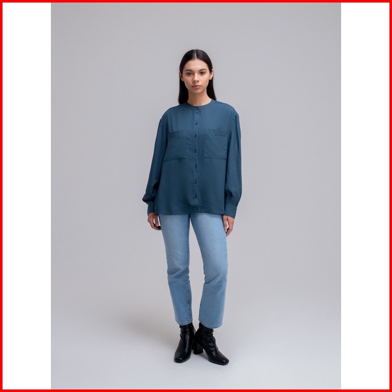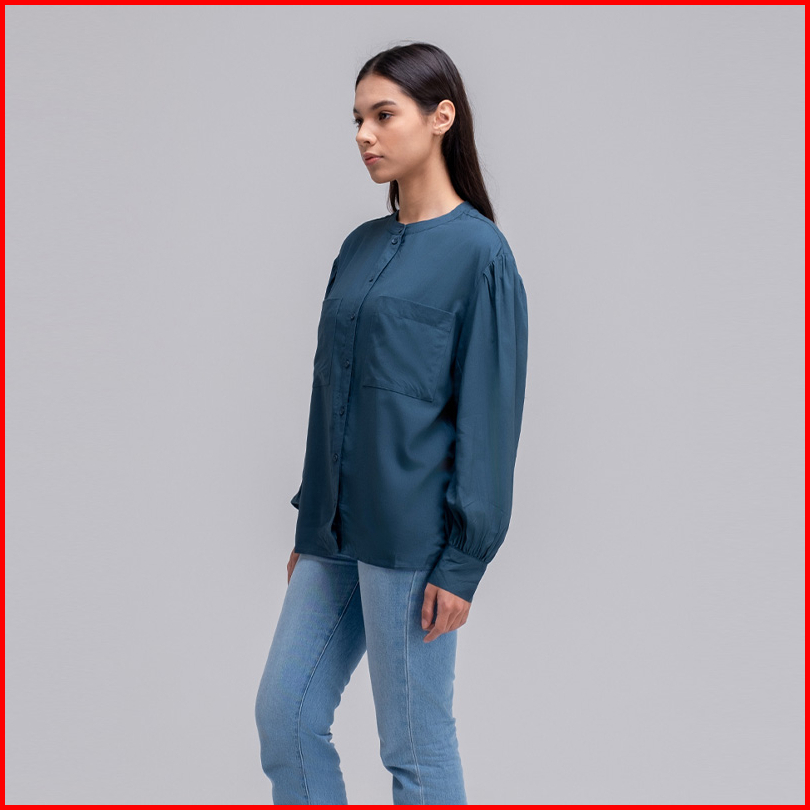 Greenlight Kemeja Blouse Rayon With Cuff Lengan Panjang Pockets Kerah Bulat Formal Outfit Hijau 160423
