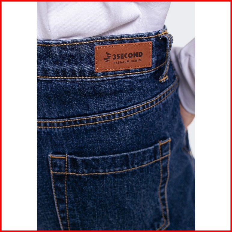 3second Original Celana Mom Jeans Panjang Cotton Katun Long Pants Denim Non Stretch Wanita Dark Blue 021122