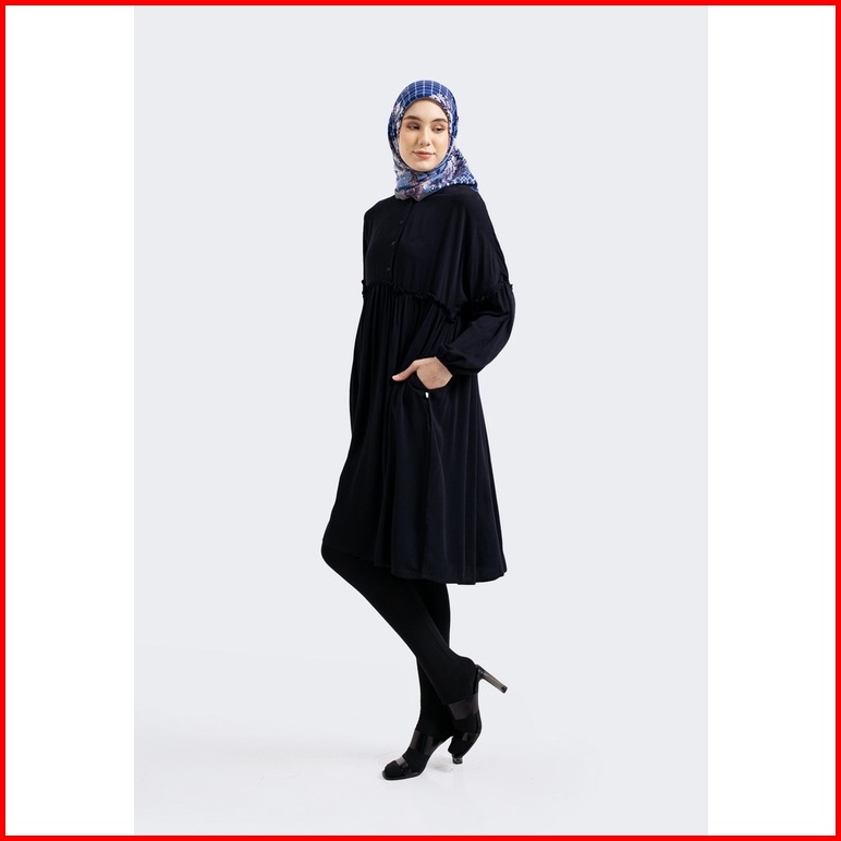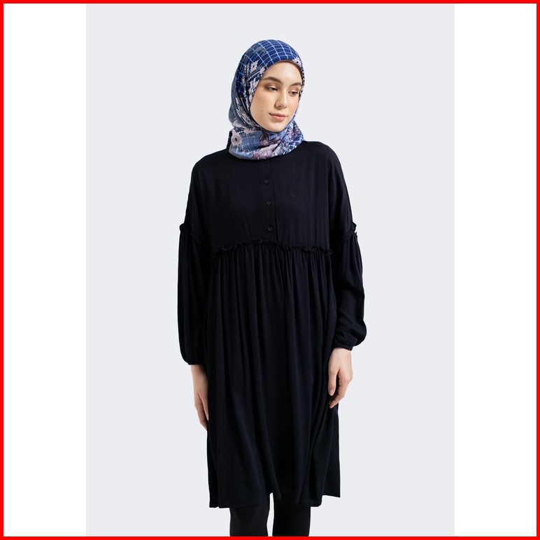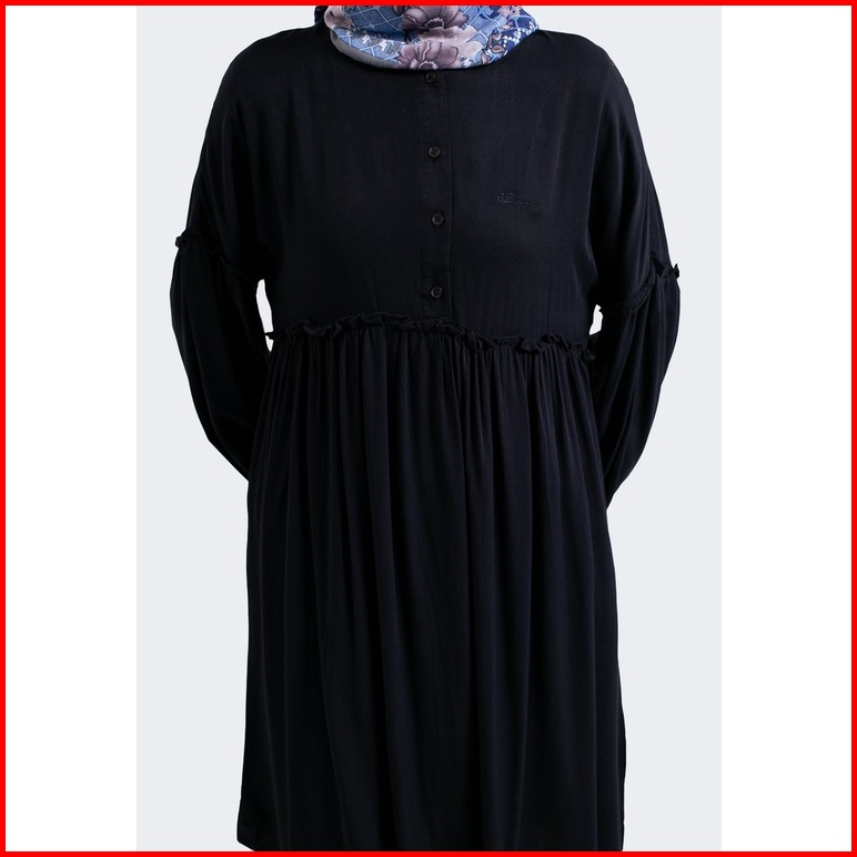 Hanna Tunik Salwa Midi Dress Pakaian Hijab Rayon Hitam H011122