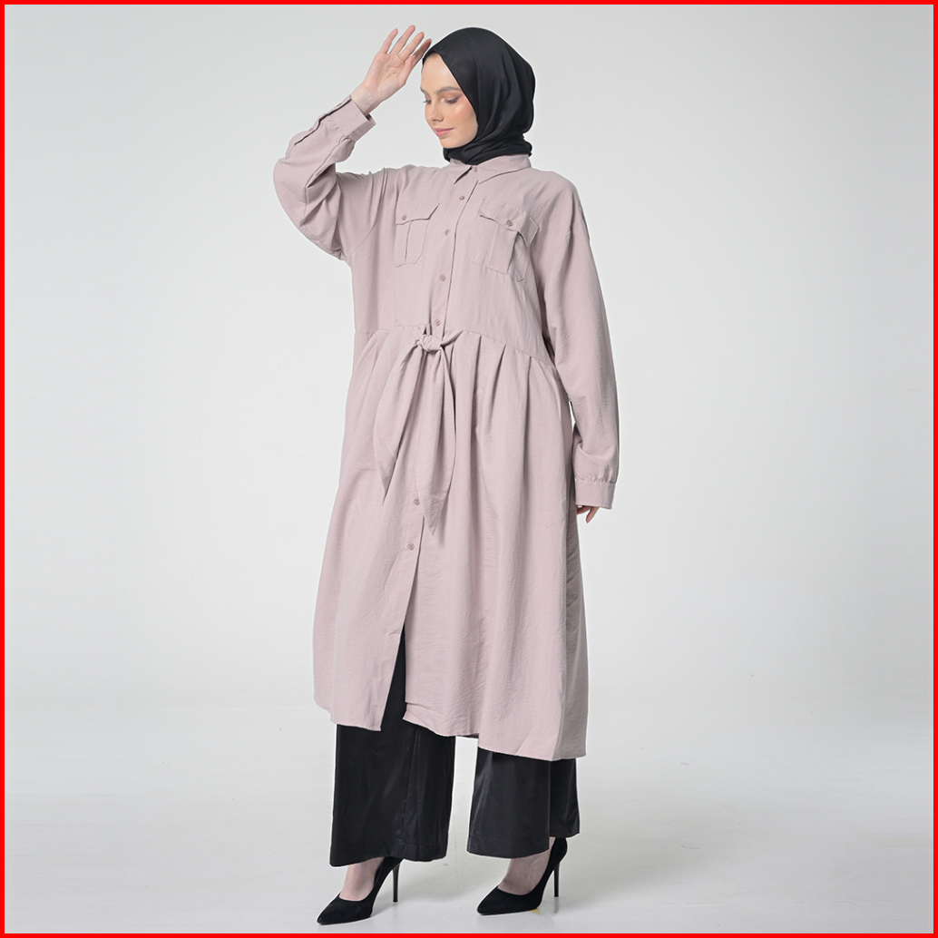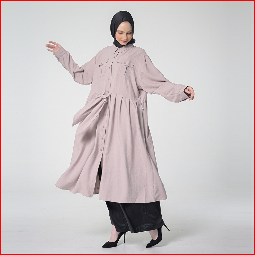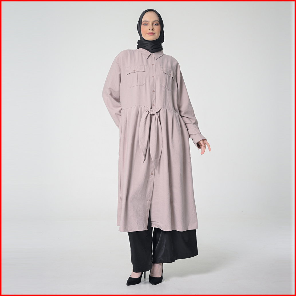 Hanna Maxi Dress Eris Circle Poly With Button And Belt Long Sleeve Polyester Gaun Wanita Baju Kemeja Terusan Ungu 060323