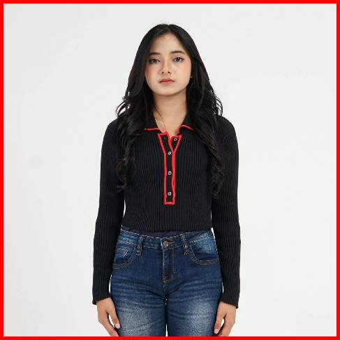 Greenlight Rajut Wanita Crop Top Lengan Panjang Katun Elastane Yumiko Cg021124