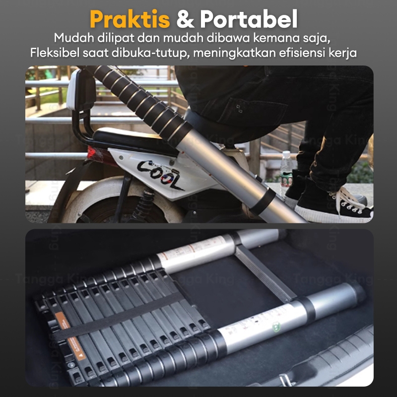 Tangga Lipat Alumunium Tangga Teleskopik Multifungsi 2.7M-5.1M Tangga Lipat Teleskopik Tangga Lurus