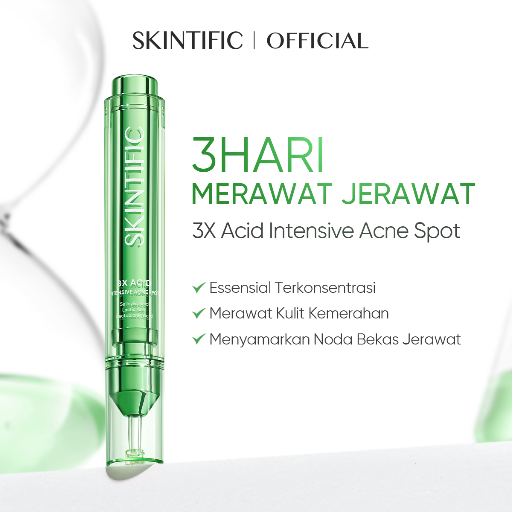 SKINTIFIC 3X Acid Acne Spot Gel 11g – Serum Penghilang Jerawat & Pori Tersumbat Terbaru