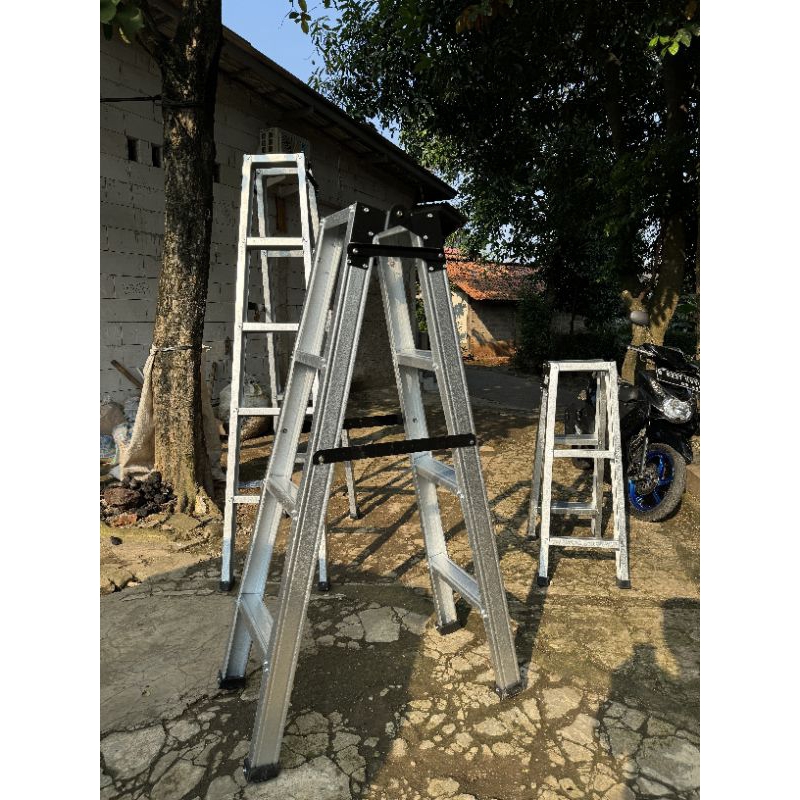 Tangga Lipat Baja Ringan Tahan Beban 350kg ukuran 1m - 2,5m mirip aluminium