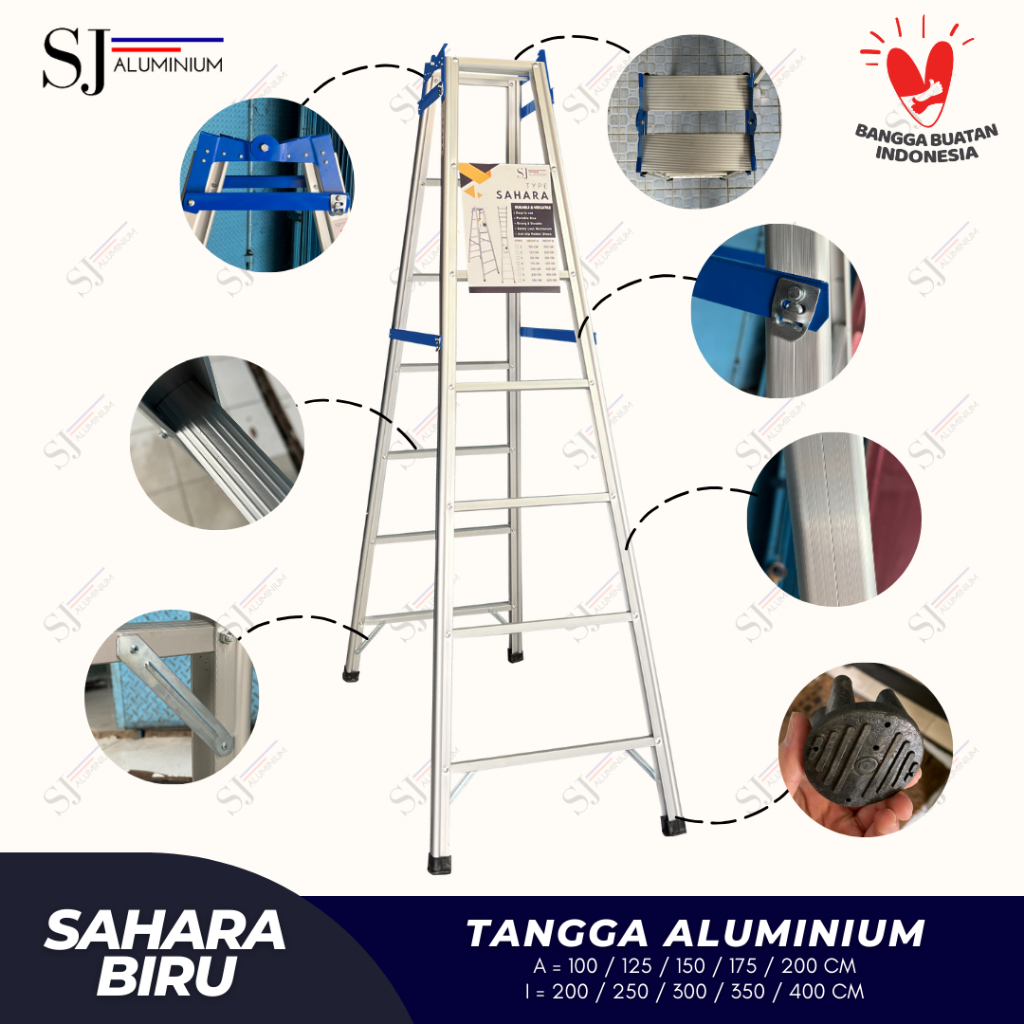 SAHARA - Tangga Lipat Aluminium Jumbo Ladder Multifungsi 200KG - Sahara Biru Ukuran 1 M / 1,25 M / 1,5 M / 1,75 M / 2 M