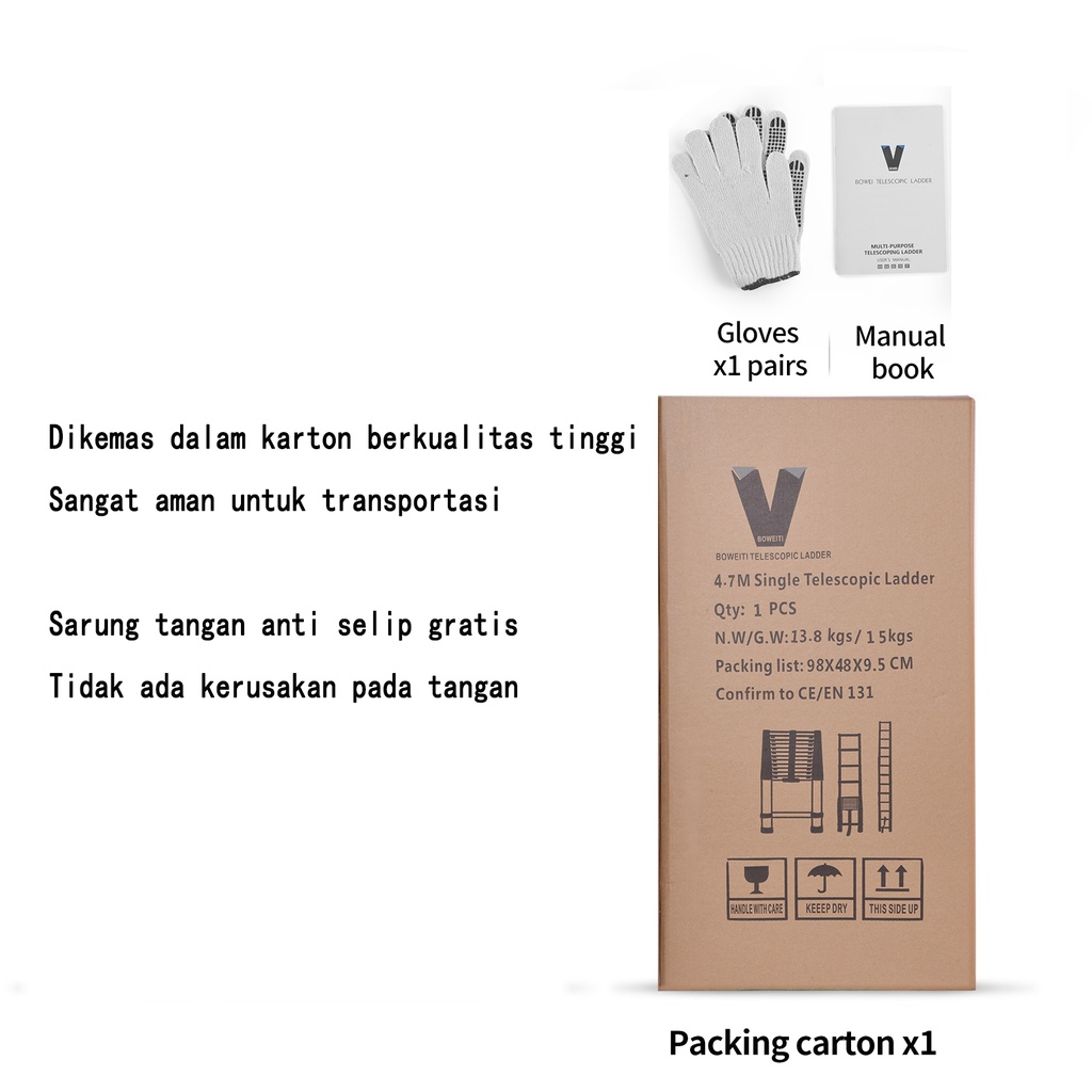 Tangga Lipat Aluminium Tangga Teleskopik 2.6M/3.8M/4.4M/5M/5.6M/6.4M/8M tangga teleskopik Dikemas secara ketat dengan sarung tangan gratis